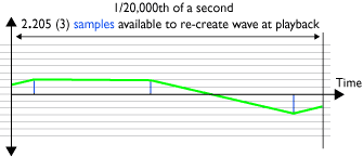 Sampling (A to D) at 44.1KHz of one 20,000Hz cycle (hi treble)